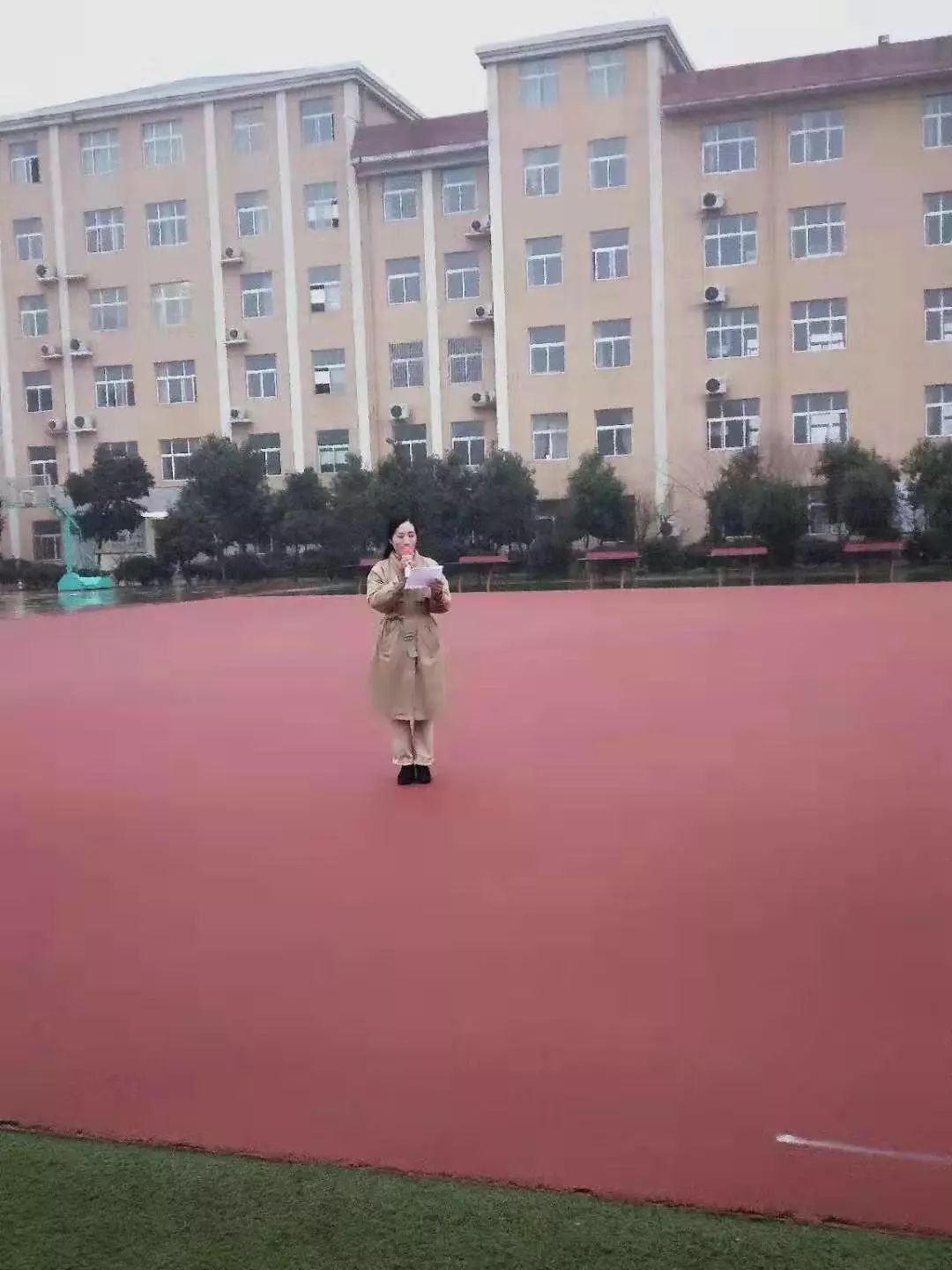 2019年12月16日上午7:30,沐浴着迷迷蒙蒙的小雨,我校在操场举行以“全力以赴、 轻松乐观、 迎接期末“为主题的升旗仪式。学校领导班子及全体师生参加了此次升旗仪式。本次升旗仪式由中学部教研主任黄燕萍主持。