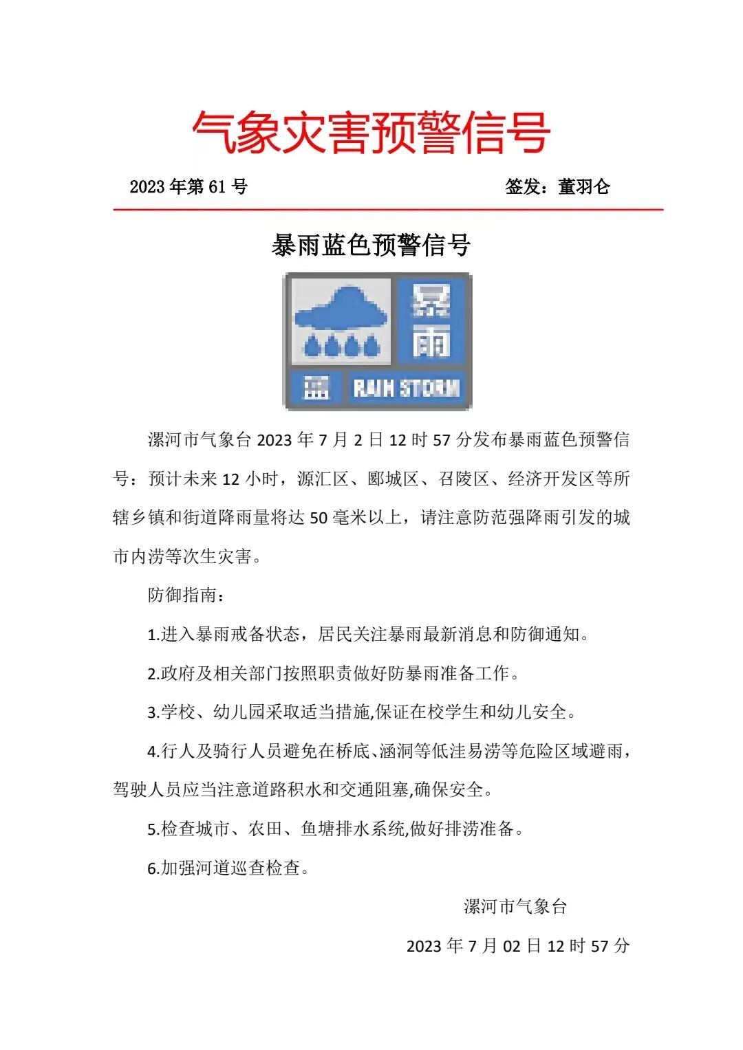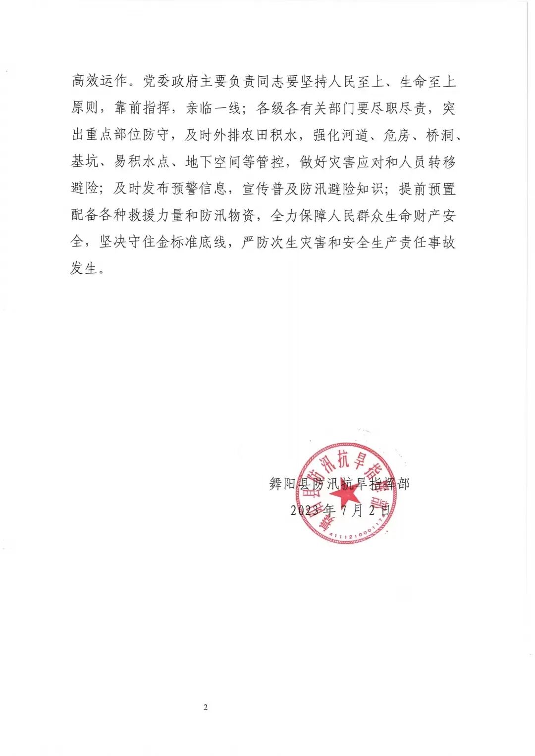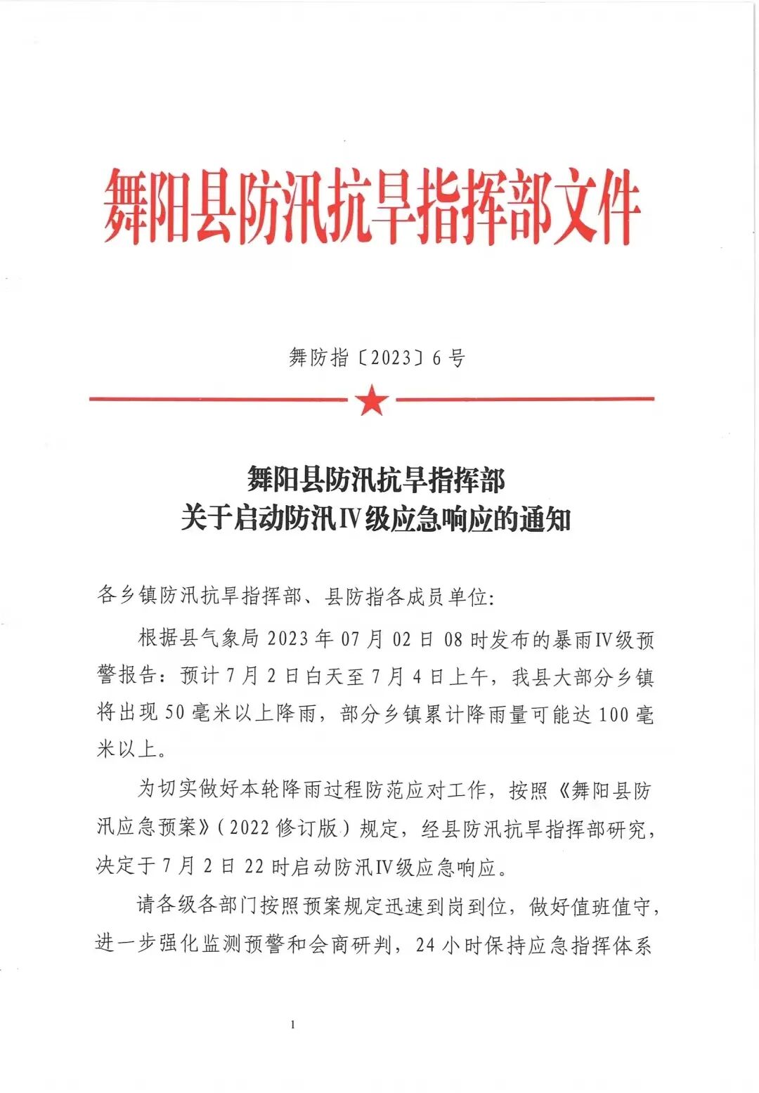 舞阳县已启动防汛四级应急响应