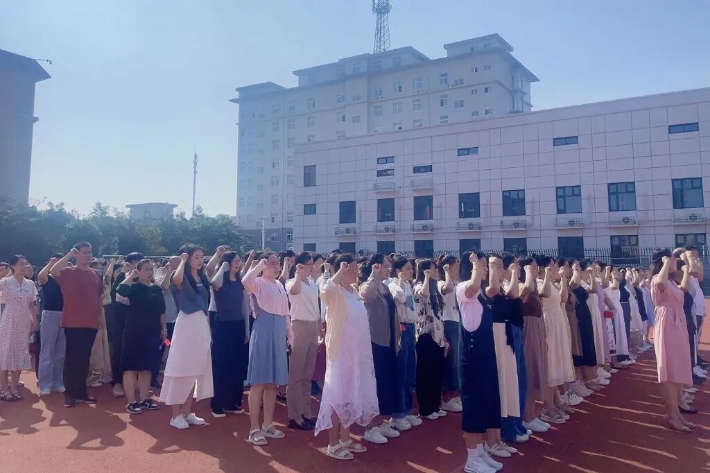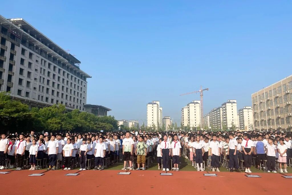 秋风一点金,梧叶染秋晖。迈着轻盈的脚步,沐浴九月的阳光,满怀金秋的畅想,播种新学期的梦想。灿烂阳光,充满了新学期的希望;凉露惊秋,吹响了新征程的号角。舞阳县育才实验学校于2023年9月7日上午八点零八分在后操场举行了2023-2024学年度开学典礼暨表彰大会。舞阳育才领导班子及全体师生参加了此次大会,大会由小学部关楚主任主持。