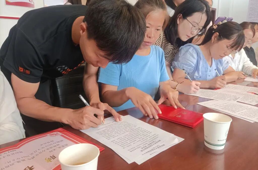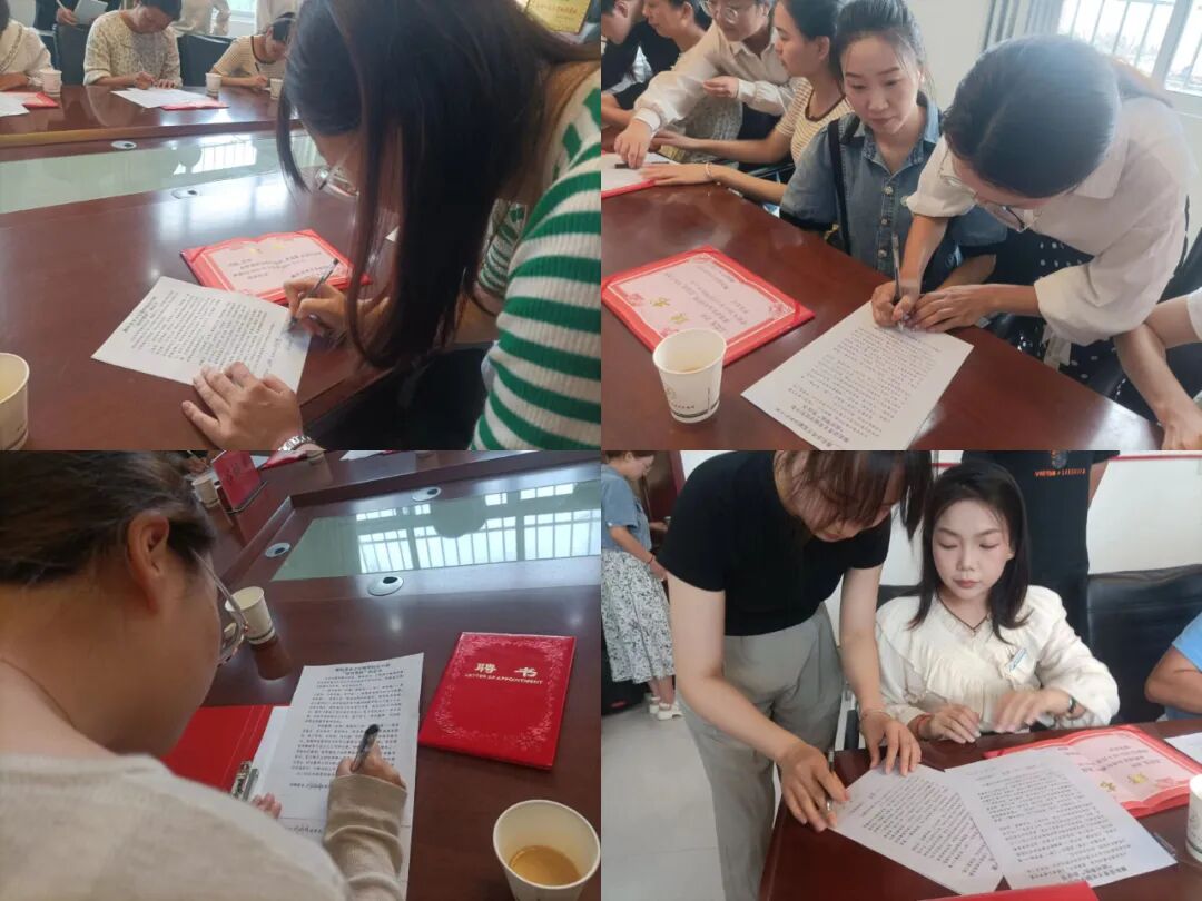 三寸粉笔,三尺讲台系国运;一颗丹心,一生秉烛铸民魂。今天签下的不仅仅是一份承诺,更是一份沉甸甸的责任。今天接过的不仅仅是一本聘书,更是成长的痕迹,日后丰收的果实。相信结对的师徒定能在同舟共济中实现双赢成长,用自己的青春和热忱,书写教育人生。