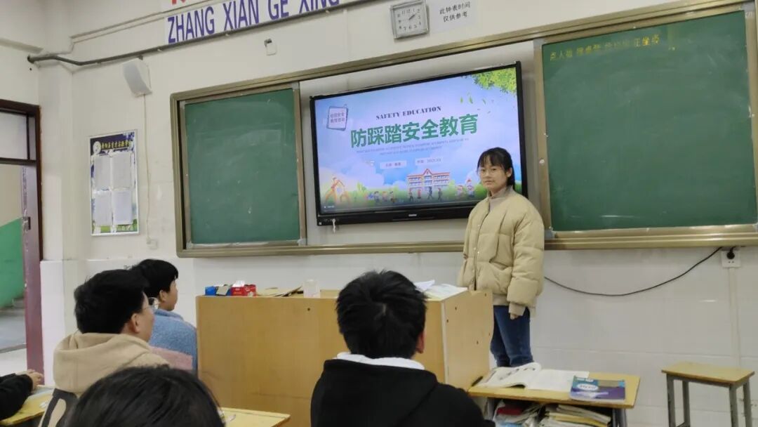 各班组织学生观看预防踩踏警示教育视频,让学生演练学习自救互救知识,直观地引导学生掌握踩踏事件发生后的自护自救安全避险方法,以确保遇到拥挤时把伤害减小到最低。