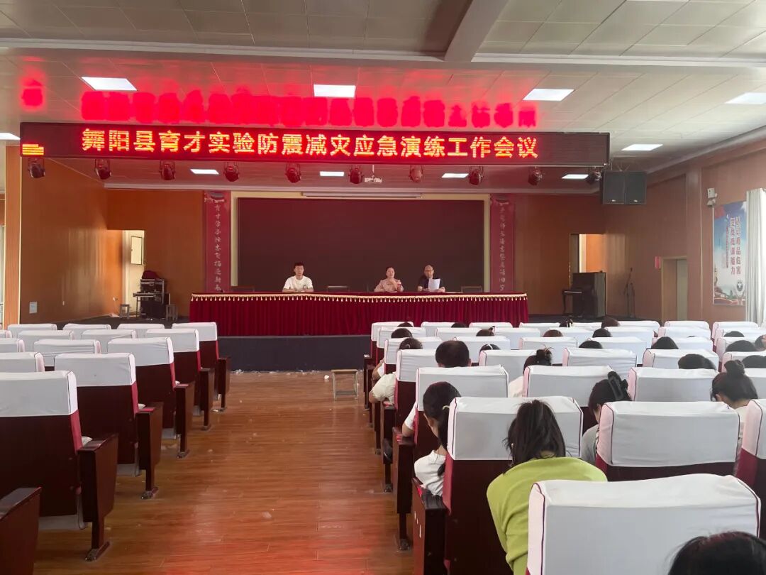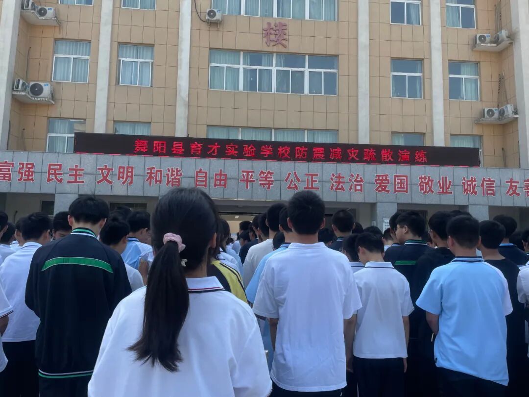 为进一步增强全校师生防震安全意识,提高面对灾害事件的处理、自护自救及应急逃生避险的能力,掌握应急避震的正确方法,确保在地震来临时,能快速、高效、有序地撤离,最大限度地保护全校师生的生命安全,舞阳县育才实验学校于5月10日开展了防震减灾应急疏散演练。防震演练活动前,学校对整个演练进行了精心策划和严密组织,成立了疏散演练领导组和现场指挥小组,明确分工,责任到人。同时制定了详细的《防震应急疏散演练方案》,明确疏散的信号和路线,在各个楼层的楼梯口都有专门负责安全的教师。同时召开应急演练工作会议,各班召开防震减灾主题班会,全体教师高度重视,认真履行职责,做好安全防护工作,为学生们的生命安全保驾护航。 随着第一次警报声的发出,防震演练正式开始,各班教师停止授课,立即告知学生“地震来了,不要慌”,并指挥学生迅速下蹲弯腰、护住头部、捂住口鼻,用桌子、书柜对自己进行最大限度保护。警报声再次响起,各班学生在老师指挥下,按要求保护自己的头部,迅速有序地分别从安全通道紧急疏散到安全、空旷的广场。各岗位负责老师认真履行相应职责,在教室、楼道、楼梯口,引导学生有序撤离,真正做到以学生生命安全为重。