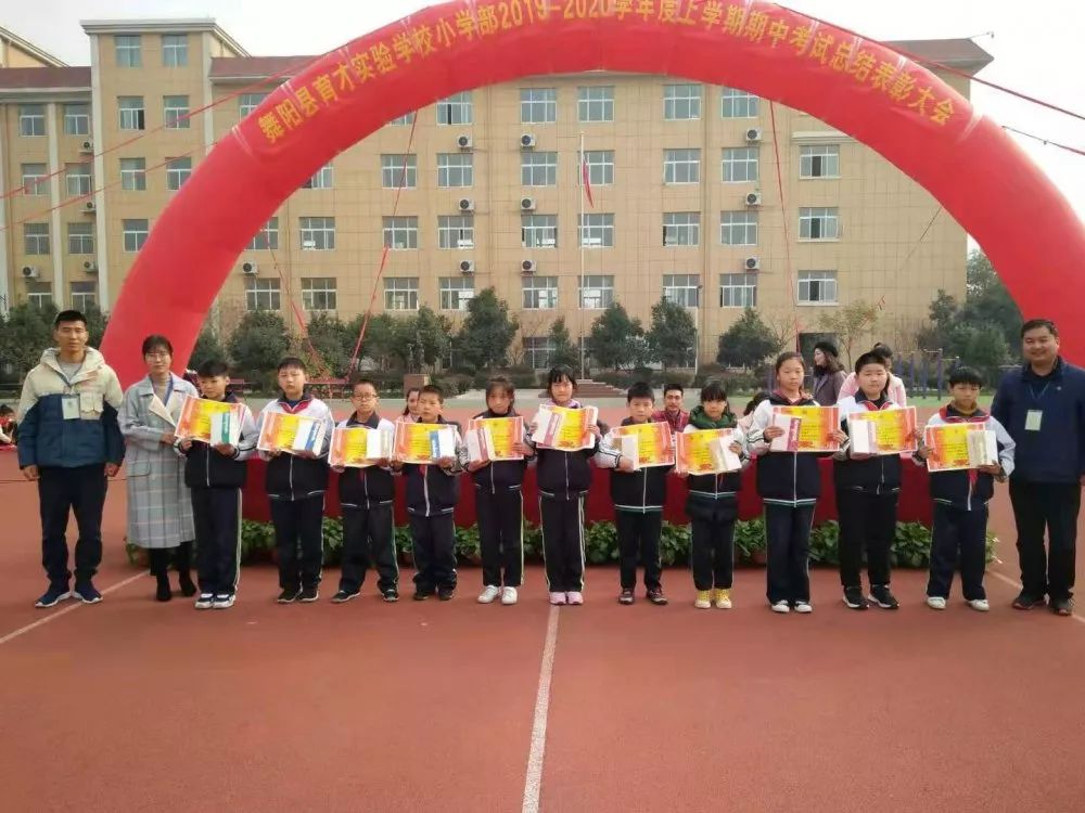 最后,我宣布舞阳县育才实验学校小学部期中考试表彰大会圆满结束!