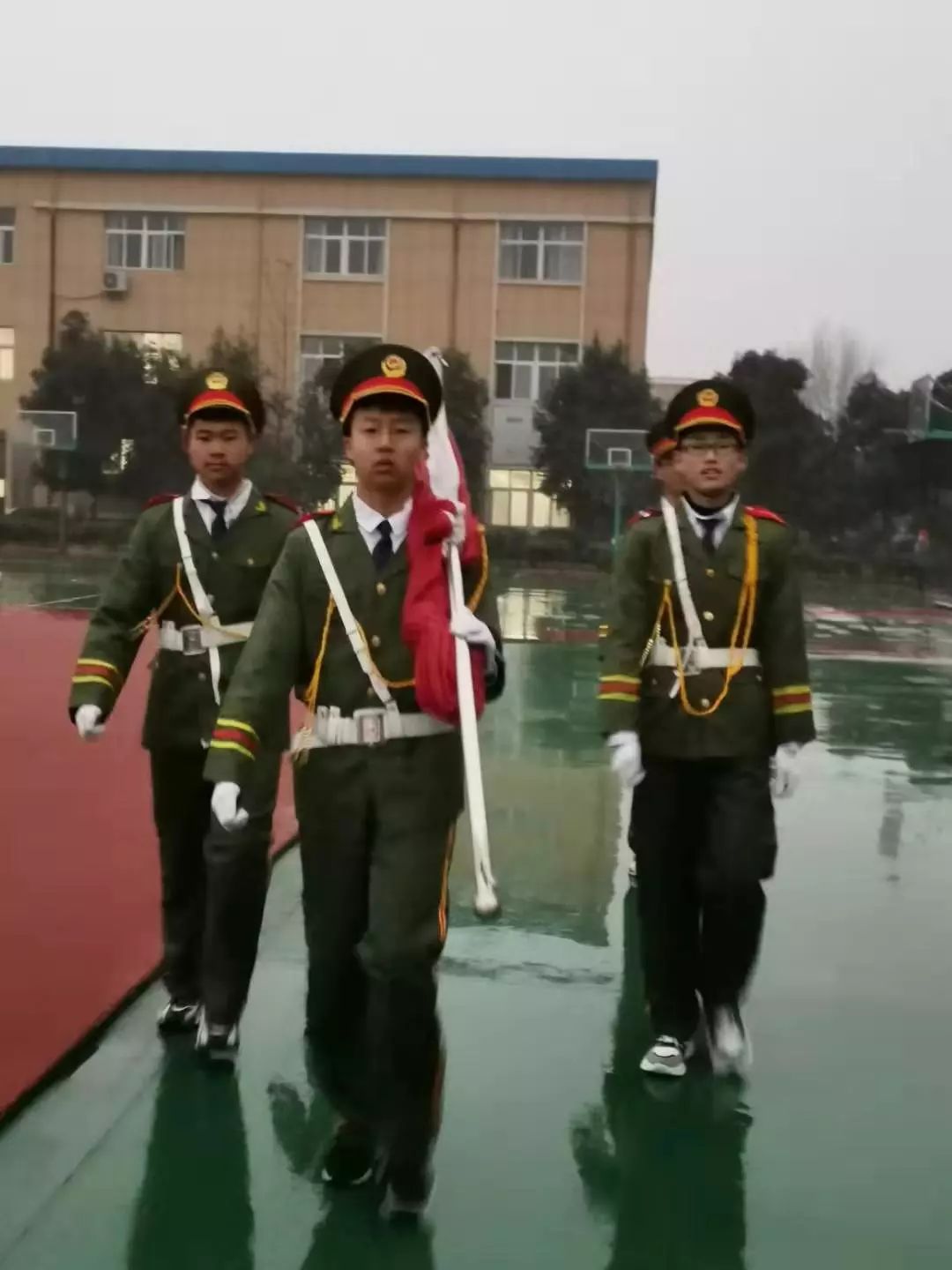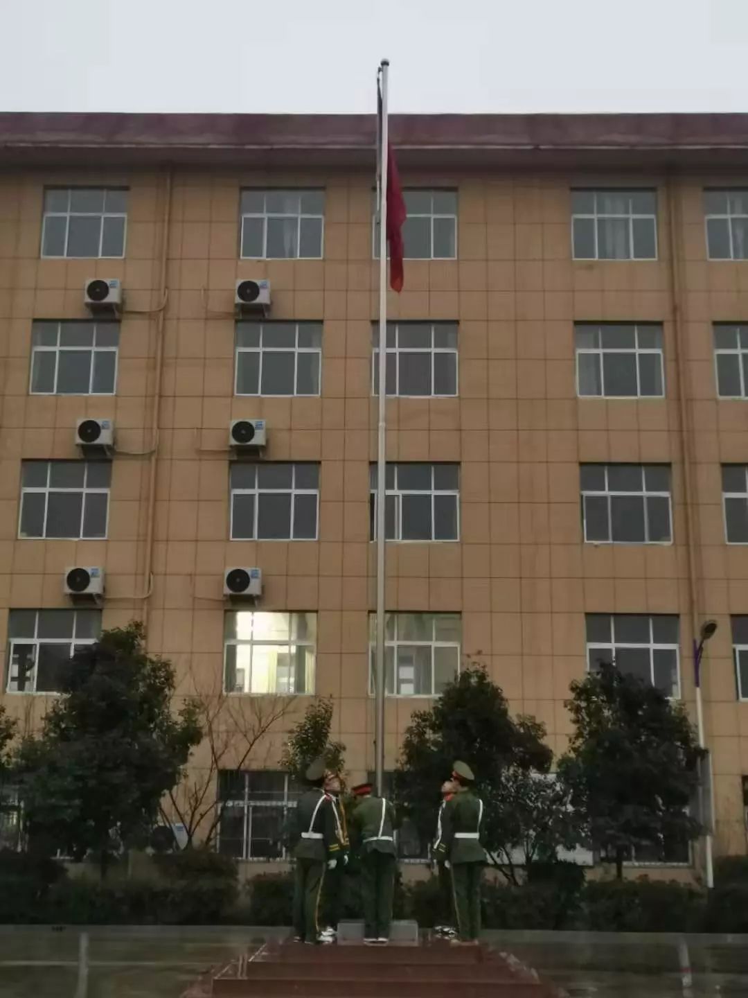 2019年12月16日上午7:30,沐浴着迷迷蒙蒙的小雨,我校在操场举行以“全力以赴、 轻松乐观、 迎接期末“为主题的升旗仪式。学校领导班子及全体师生参加了此次升旗仪式。本次升旗仪式由中学部教研主任黄燕萍主持。