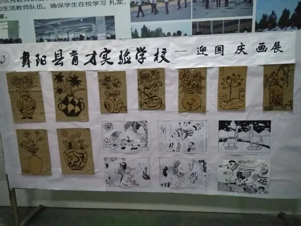 迎着清晨的第一缕阳光,走到绿荫丛丛、悦心悦目的地方,听着小鸟“叽叽喳喳”地交谈,看着老师、孩子们一幅幅用心绘出的图画,心情格外舒爽!我们舞阳育才实验学校这片时空可以给你们带来这样的感觉!当你作为教师伫足站立在我们孩子们用心描绘的一幅幅画面面前,是否会想到,在孩子们的世界,勤奋耕耘、追求卓越、永无止境……