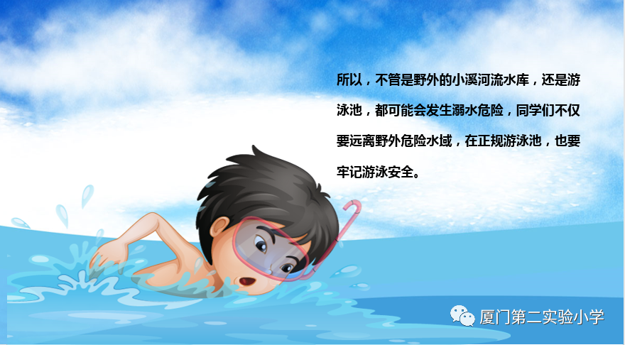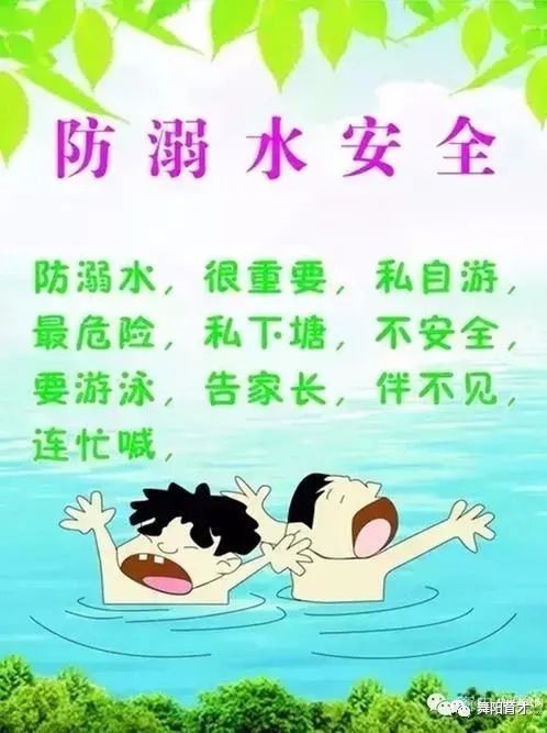 随着炎热的夏天到来,因孩子们冒险玩水导致溺水身亡的惨痛事件时有发生。溺水,已是孩子的头号杀手,防溺水教育已刻不容缓。为了孩子们的健康成长,我们迫切希望各位家长积极配合,履行孩子的监护人职责,不论你有多忙,请时刻把孩子的安全教育放到首位,认真做好安全教育工作。现将有关知识嘱咐如下: