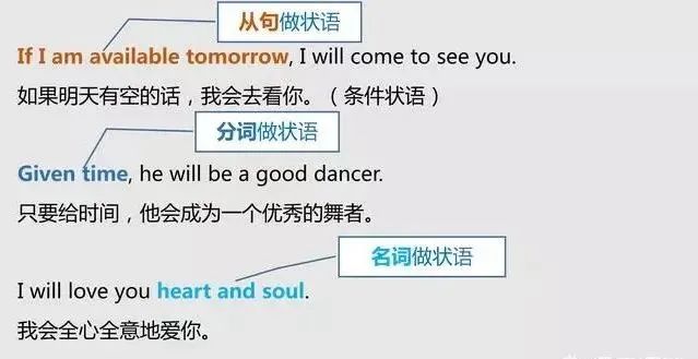 英语中,状语传递的信息包括:时间、地点、原因、目的、结果、方式、程度等,其使用的目的就是使表达更为丰满、具体。英语中的副词、不定式、介词、名词、从句等都可以做状语。那么如何判定哪些成分是“状语”呢?关键就看这个词/词组/从句是否在修饰动词or形容词or副词or整个句子。