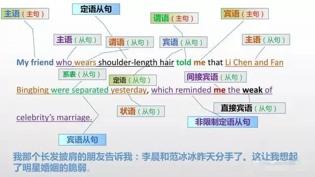 语法是理解英语逻辑的核心。语法不好的同学,处理简单句尚可;遇到复杂句型时,就晕头转向了。所以,要彻底读懂英语,必须在语法上下苦功夫。今天,我们彻底解析一下这些句子成分。(下图为:一个复合句中,所有的句子成分。)