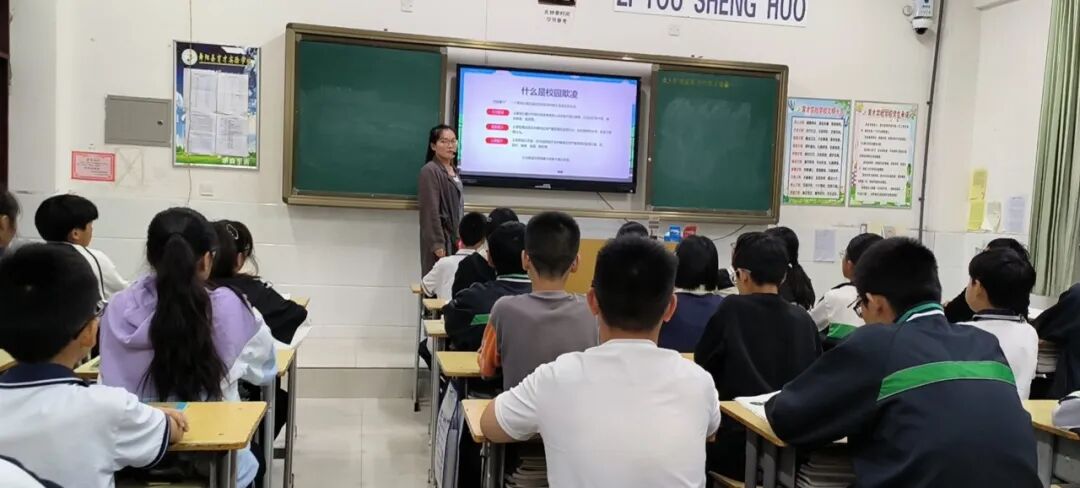 为促进学生身心健康发展,更好地预防校园欺凌事件的发生,构建平安和谐校园,提高学生安全防范意识和自我保护能力,2023年9月24日我校组织各班开展了以“拒绝校园欺凌,共建平安校园”为题的班会活动。