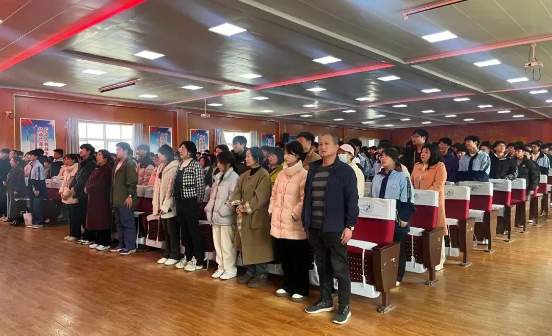 全体起立,奏唱国歌,励志主题教育报告会在庄严的国歌中拉开序幕。